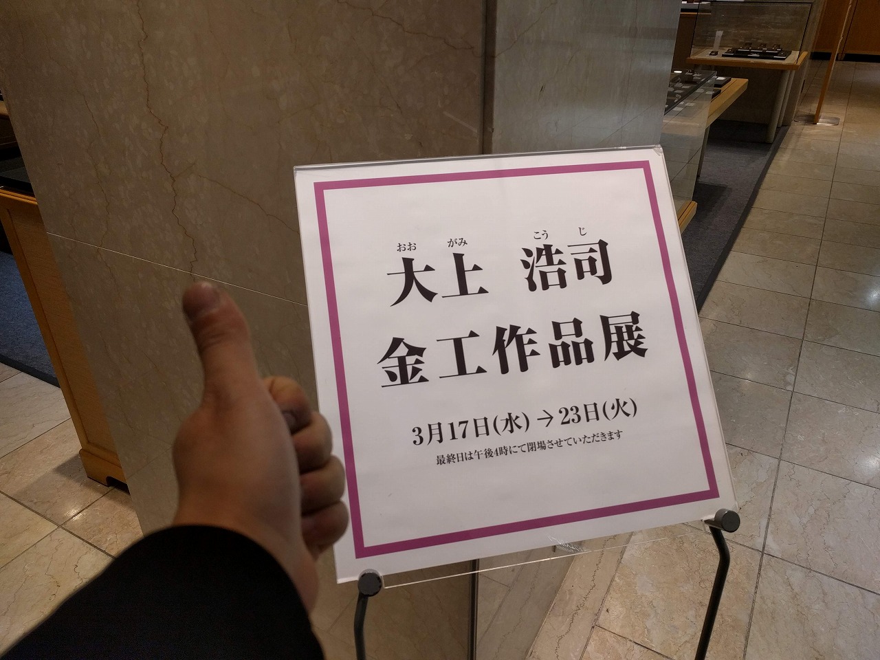 個展の様子 & ハンドトルソー イベント/お知らせ 2021.03.18 二日目終了。 こんなところでやってます。 初日から久しぶりに来てくれた方に会えて嬉しかったり、 初めて見てくれた方々が新作「黒髑髏のネックレス」や「花の指輪」、今までに作った作品を買ってくれて 良い出だしとなりました。 ほんまにありがとうございます。 次の作品の糧になります。 この指輪のディスプレイは 癒やしの陶芸アトリエ 緑時間greentimeさんが作ってくれたハンドトルソーで一点物の作品。 指輪をより綺麗に魅せてくれる! 割らんように大切に使い続けたい。