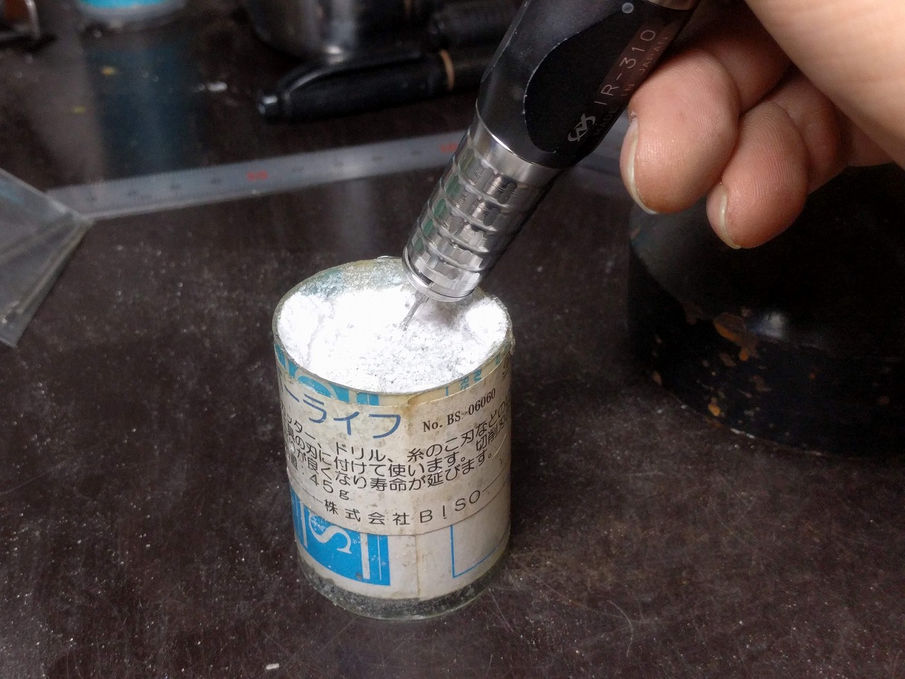 ↓ドリルにはこんなん付けながら低回転でゆっくりと進めていく。
