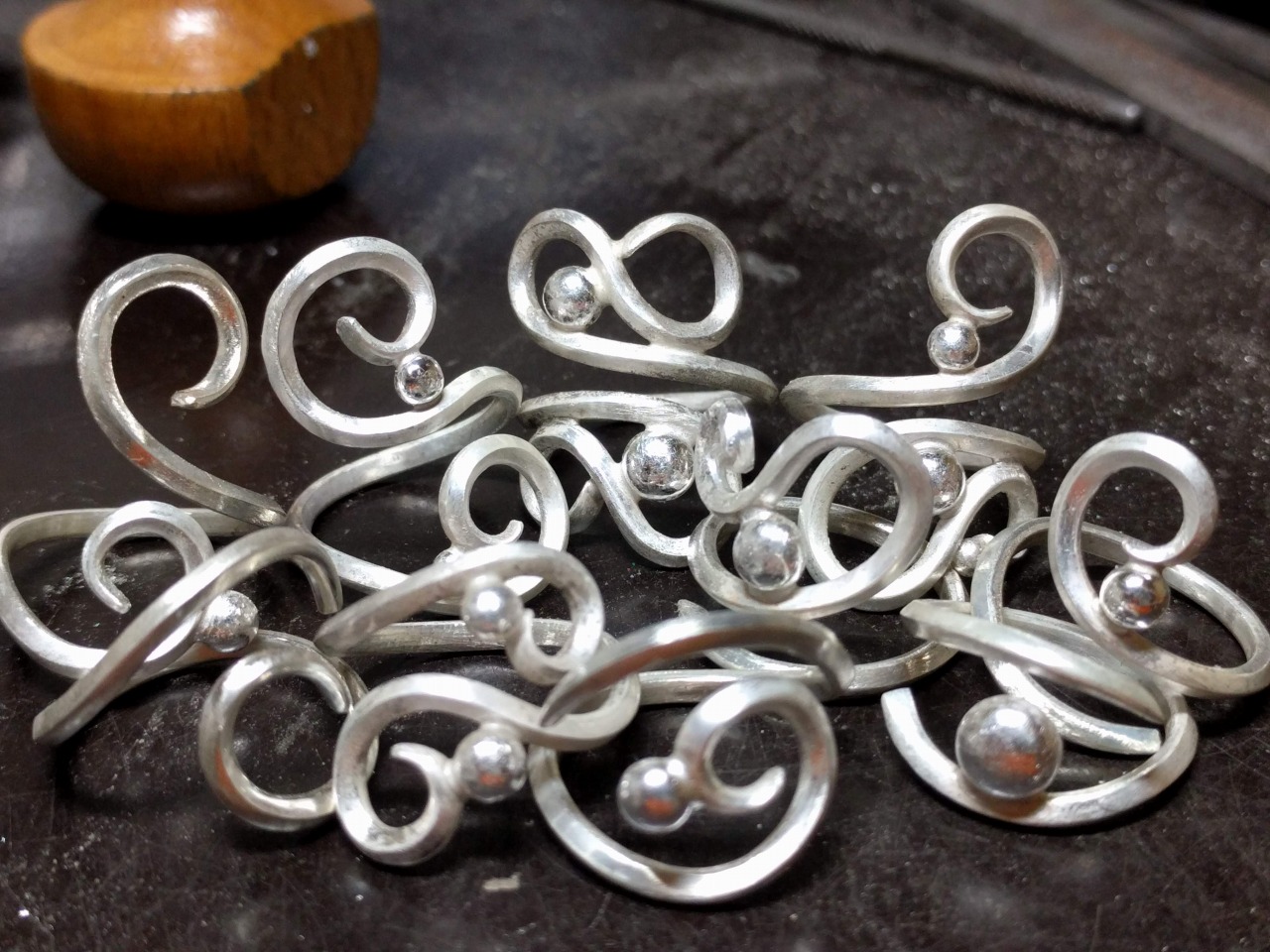 先日、炭の上で溶かして作った銀粒をロウ付け。