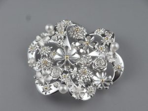 銀、純金粒、アコヤ真珠。