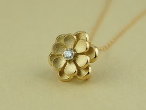 K18とダイヤモンドで作ってみました。ダイヤはもちろんVSクラス以上を使用。安いダイヤは白っぽくてあまり奇麗じゃないですね。