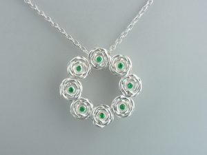 銀とエメラルド。5月の誕生石。8本のバラには意味があります。「思いやりや励ましをありがとう」