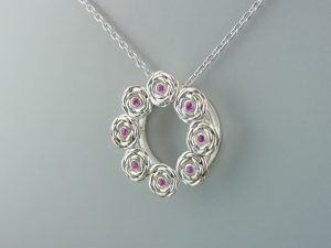 銀とルビー。7月の誕生石。8本のバラには意味があります。「思いやりや励ましをありがとう」