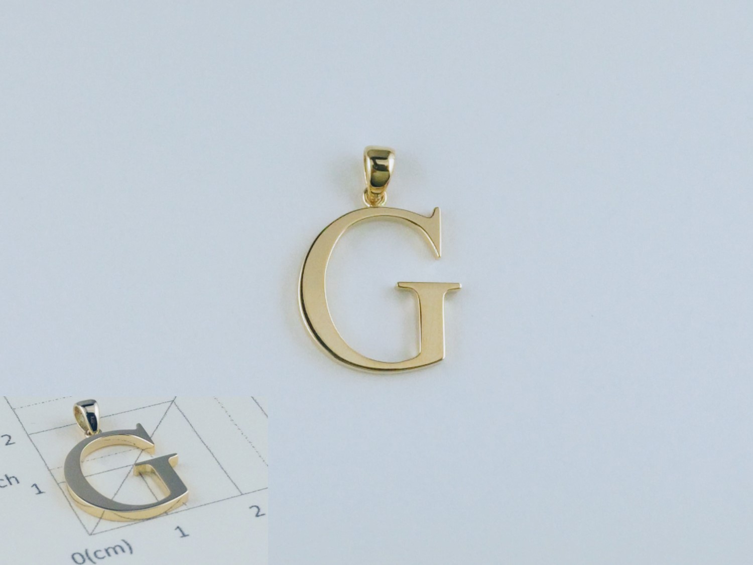 イニシャル「G」のペンダント イニシャル「G」のペンダント 素材:K18 イニシャル「G」のペンダント 素材:K18 銀の板から糸鋸で「G」を切り出し、バチカンに丸カンをかましてロウ付けしました。 角は少しだらして仕上げてます。 字体はローマン体。