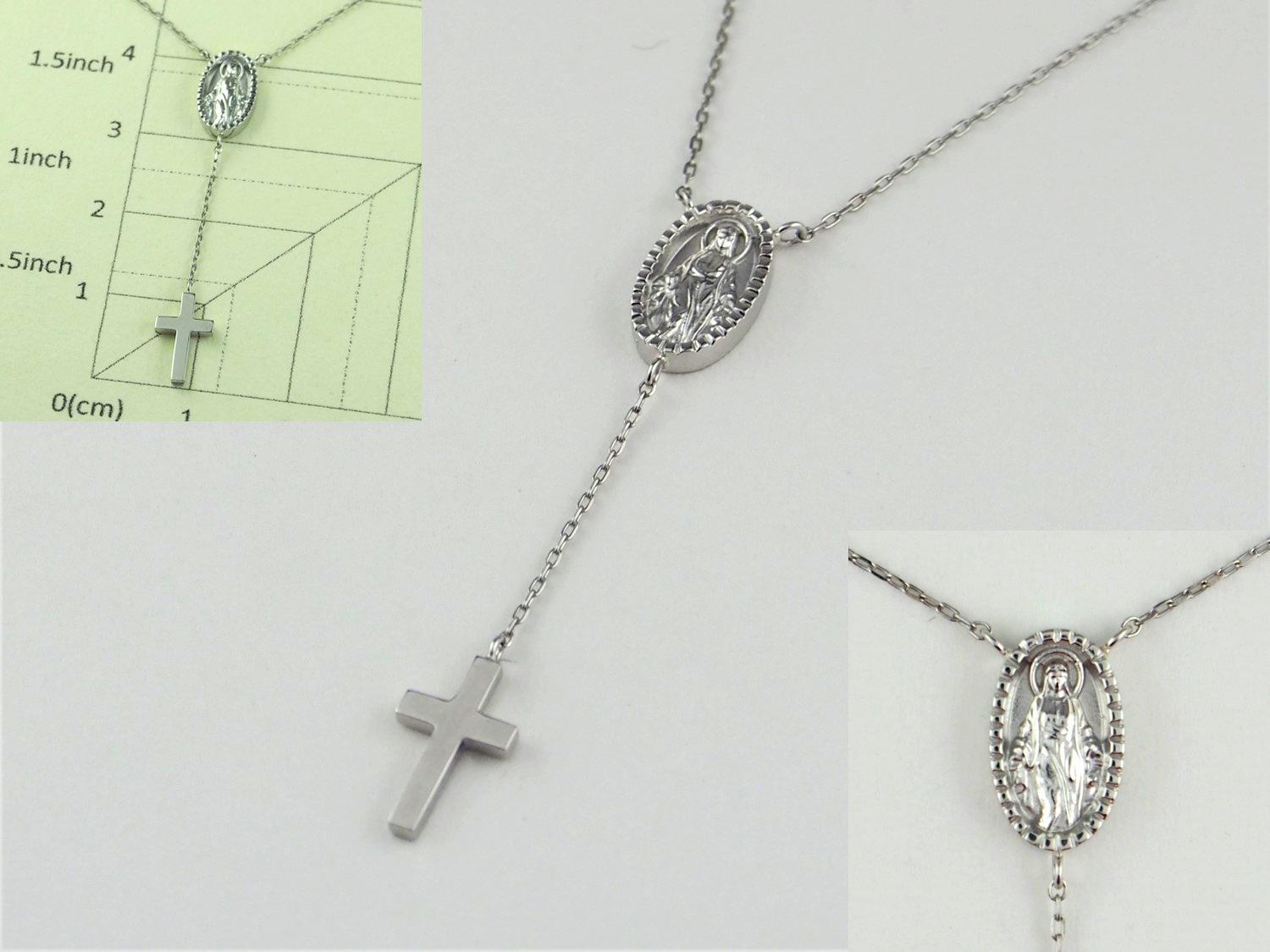 メダイのペンダントネックレス メダイのペンダントネックレス 素材:Pt900 長野県のお客様 メダイのペンダントネックレス 素材:Pt900 楕円型の本体部分はジュエリーCADで原型を制作&鋳造、クロスは板からの切り落としです。 それぞれに丸カンをロウ付けして、アズキチェーンで繋げています。 長野県のお客様