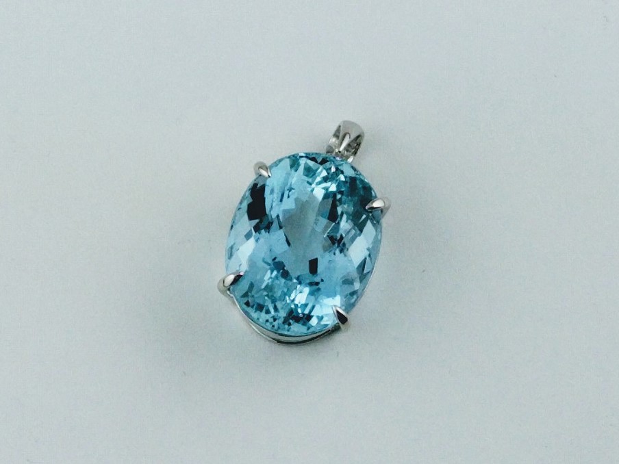 ブルートパーズのペンダント ブルートパーズのペンダント 素材:Pt900,ブルートパーズ 大阪府のお客様 ブルートパーズのペンダント 素材:Pt900,ブルートパーズ お預かりした指輪からペンダントトップに作り変えました。 石にぴったりと合うシンプルな4本爪の石枠を作って留めています。 大阪府のお客様