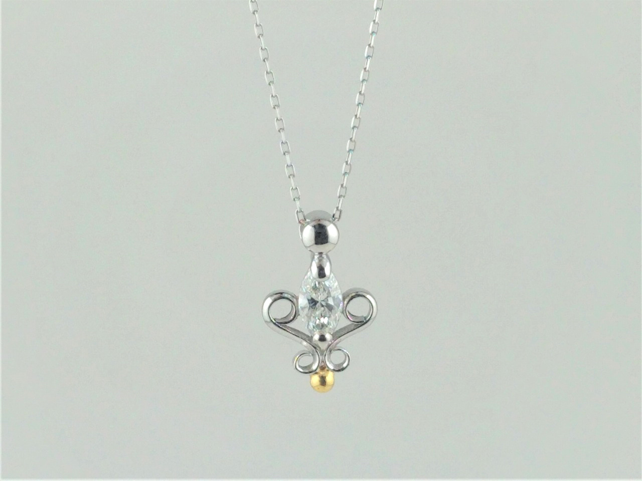 マーキスダイヤモンドのペンダントネックレス マーキスダイヤモンドのペンダントネックレス 素材:Pt900,K24,ダイヤモンド 滋賀県のお客様 マーキスダイヤモンドのペンダントネックレス 素材:Pt900,K24,ダイヤモンド デザインはお客様からイメージをお聞きして、こちらから提案させていただきました。 お預かりした指輪に留まっていたダイヤモンドを留めています。 地金からの手作りです。 滋賀県のお客様