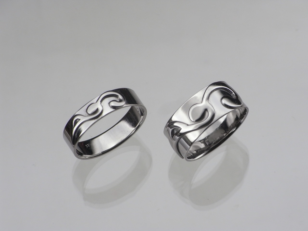 音符のペアリング K様 音符のペアリング K様 素材:Silver 大阪府のお客様 音符のペアリング K様 素材:Silver お客様がデザインされた音符のイラストをもとに制作しました。 指輪の幅は音符に合わせています。 変色防止の為のロジウムコーティングを施しました。 大阪府のお客様